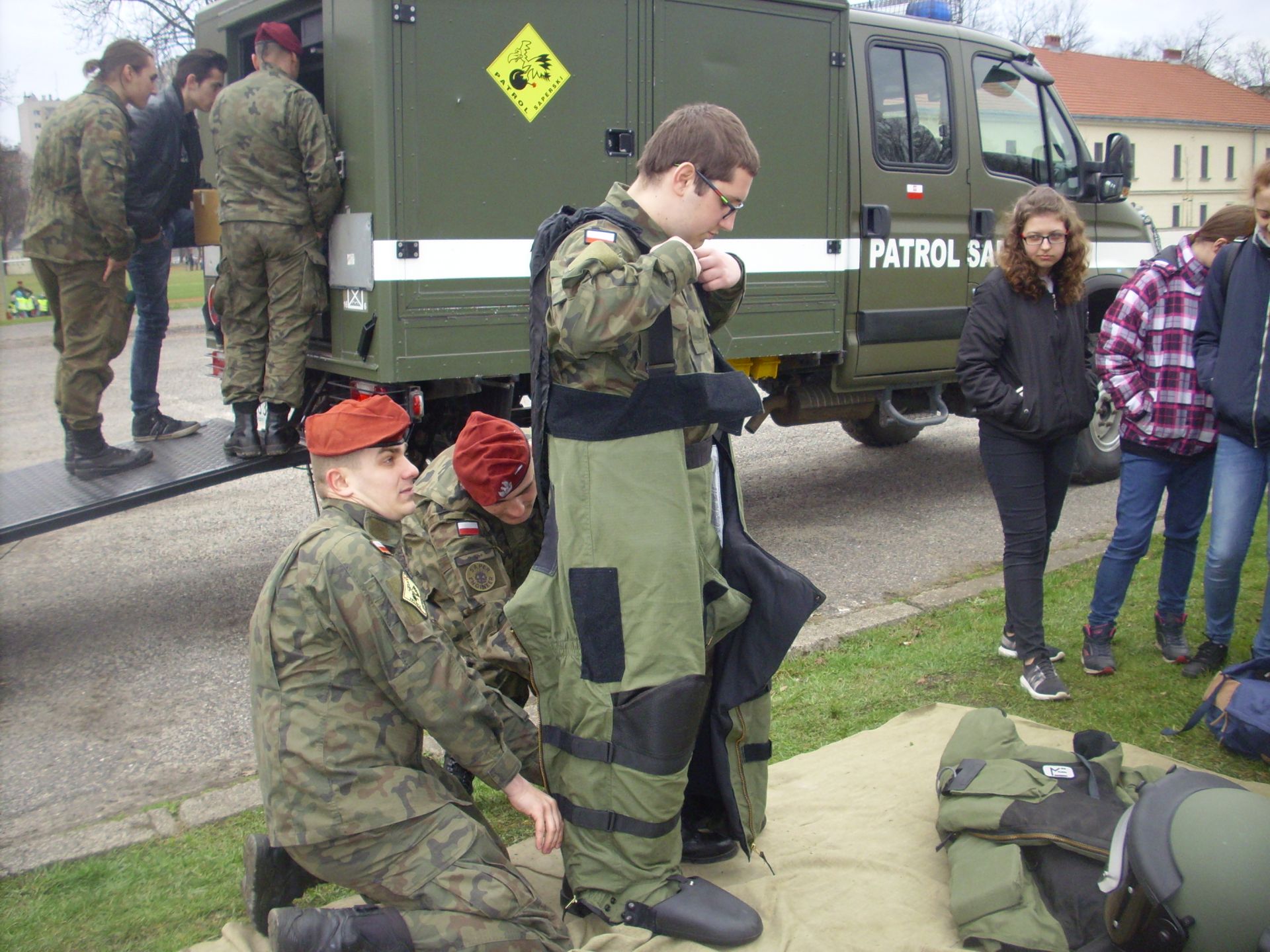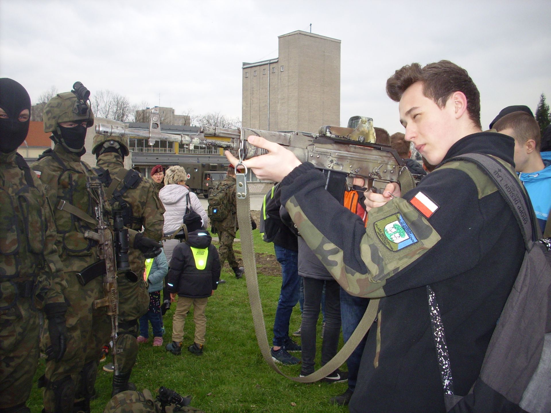 W dniu 06.04.2018 uczniowie naszej szkoły wzięli udział w „Dniu Otwartych Koszar 16 Batalionu Powietrznodesantowego im. gen. bryg. Mariana Zdrzałki w Krakowie”. W trakcie zwiedzania uczniowie m.in.: obserwowali przemarsz pododdziałów, dynamiczny pokaz wyszkolenia, zapoznali się z sprzętem wojskowym, wyposażeniem wojskowej straży pożarnej i sprzętem medycznym wykorzystywanym w trakcie akcji ratunkowych oraz wzięli udział w uroczystym apelu z okazji Święta Batalionu. Na zakończenie uczniowie mogli skosztować prawdziwej wojskowej grochówki.