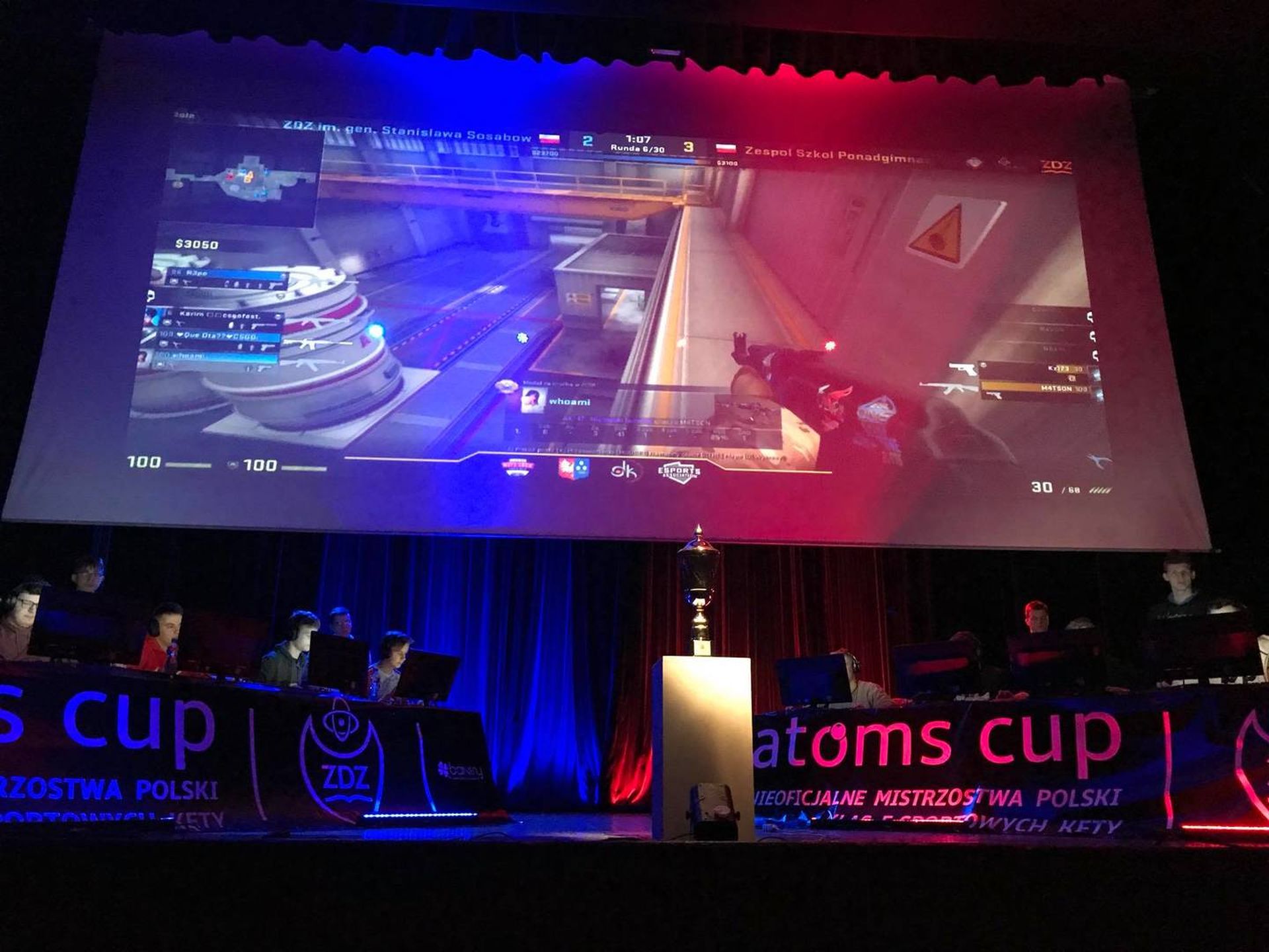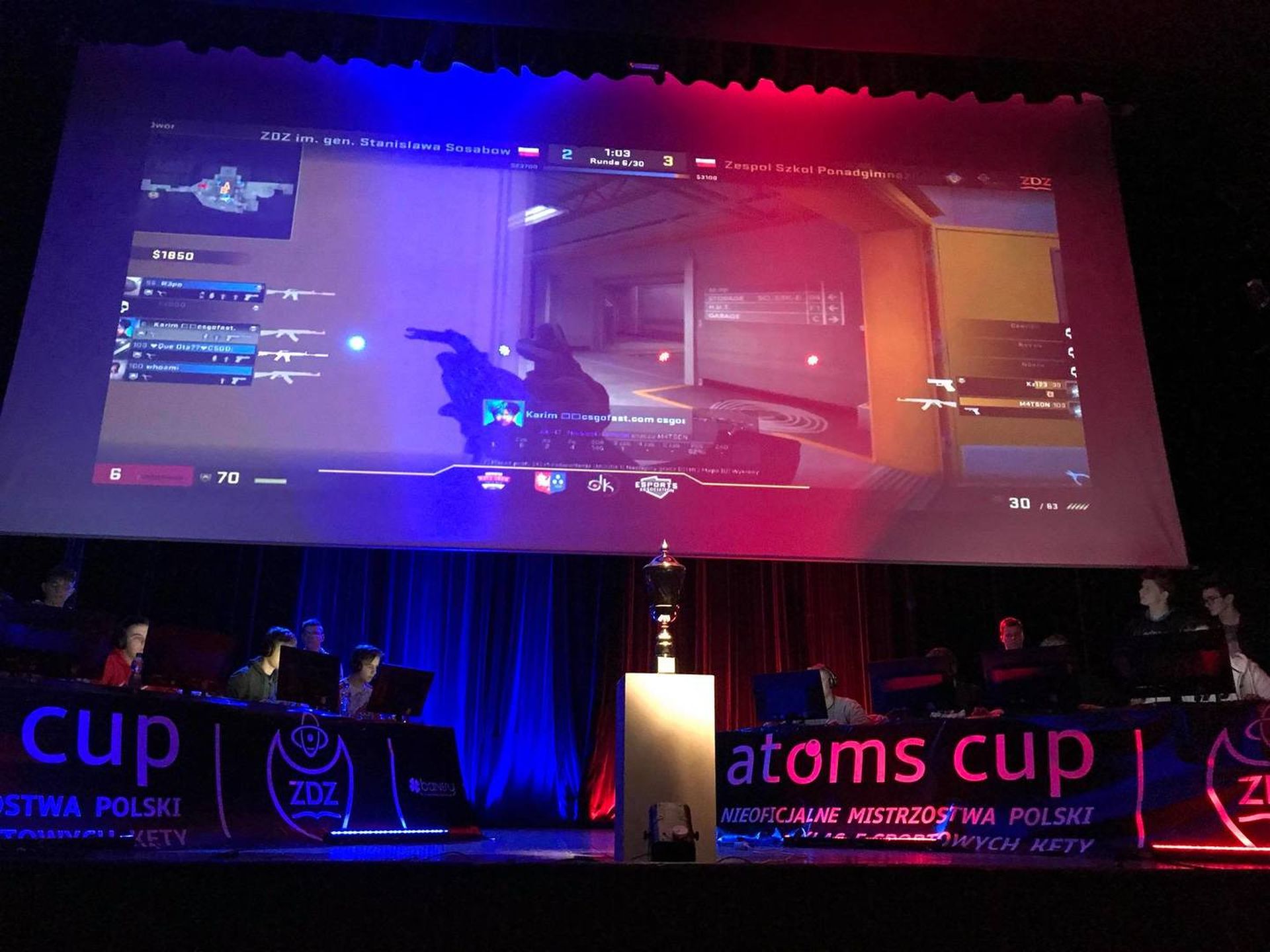 Osiem najlepszych zespołów klas e-sportowych z całej Polski, wyłonionych podczas eliminacji online, zmagało się w grze CS: GO podczas I Mistrzostw Polski klas e-sportowych „ATOMS CUP”. Zawody przebiegały na bardzo wysokim poziomie, dzięki czemu można było zobaczyć kilka godzin wspaniałych zmagań e-sportowych.