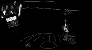 W międzyczasie bar odwiedzają goście ( grani przez tych samych aktorów). Grażyna Bułka – właścicielka baru przeobraża się w lateksową lalę, następnie ubrana w krótką czarna skórzaną spódniczkę dominuje męża, wysyłając go po drinki ( a on nie potrafi przedrzeć się przez tłum grany przez niego samego!), po chwili szczerze jej współczujemy, gdy jąka się, będąc tłamszona przez męża.