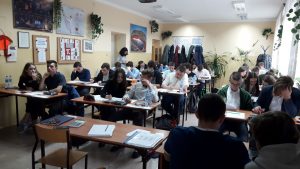 W miłej atmosferze drużyny przystąpiły do rywalizacji konkursowej. Konkurs składał się z dwóch równoległych etapów: uczniowie odpowiadali na pytania z testu multimedialnego pod hasłem „Matematyka dzika” przygotowanego przez e-math.pl oraz rozwiązywali na kartkach różne zadania logiczno-matematyczne. Młodzież miała okazję „połamać głowę” w niestandardowy sposób, odejść od rutynowego rozwiązywania zadań na lekcji, przypominając sobie wiele matematycznych zagadnień. Pokazała, że obcowanie z matematyką, może być przyjemne a przede wszystkim łatwe.