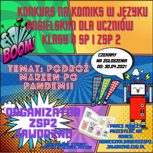 Konkurs na komiks 6 kwietnia 2021 Zapraszamy do udziału w konkursie na komiks w języku angielskim. Regulamin-Konkursu-na-KomiksPobierz