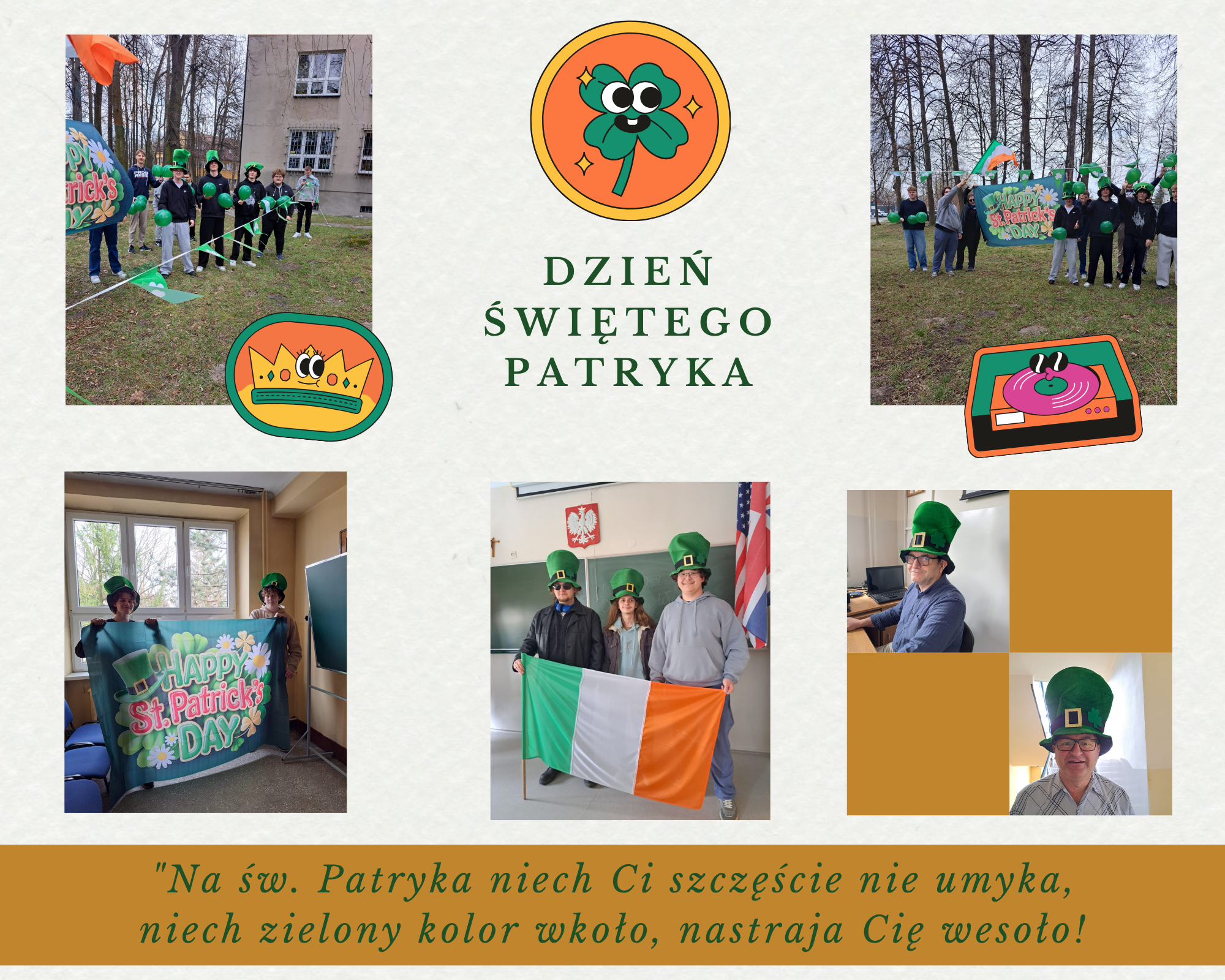 Dzisiaj w naszej szkole tropiliśmy leprechauny. Z okazji Dnia św. Patryka korytarze opanowała zielona energia, a my wspólnie szukaliśmy szczęścia ukrytego na końcach tęczy.