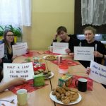 Dużo zabawy, ale i zdrowej rywalizacji dostarczył konkurs, który sprawdzał znajomość przysłów angielskich. Wszyscy wiemy, że są one mądrością narodów, niekiedy ich odpowiedniki w obcym języku są zbliżone do rodzimych, innym razem nie. Odgadnięcie ich wcale nie jest takie łatwe, jak mogłoby się wydawać. Polacy „kują żelazo póki gorące”, Anglicy „koszą siano kiedy słońce świeci”….