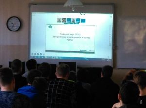 W dniu 17.10.2017r. chętni uczniowie klas Technik informatyk E-SPORT mogli zmierzyć się z WĘŻEM, czyli wziąć udział w wykładzie Pana mgr inż. Andrzeja Ptasznika wykładowcy w Warszawskiej Wyższej Szkole Informatyki. Tematem dzisiejszych warsztatów było PROGRAMOWANIE w języku PYTHON.
