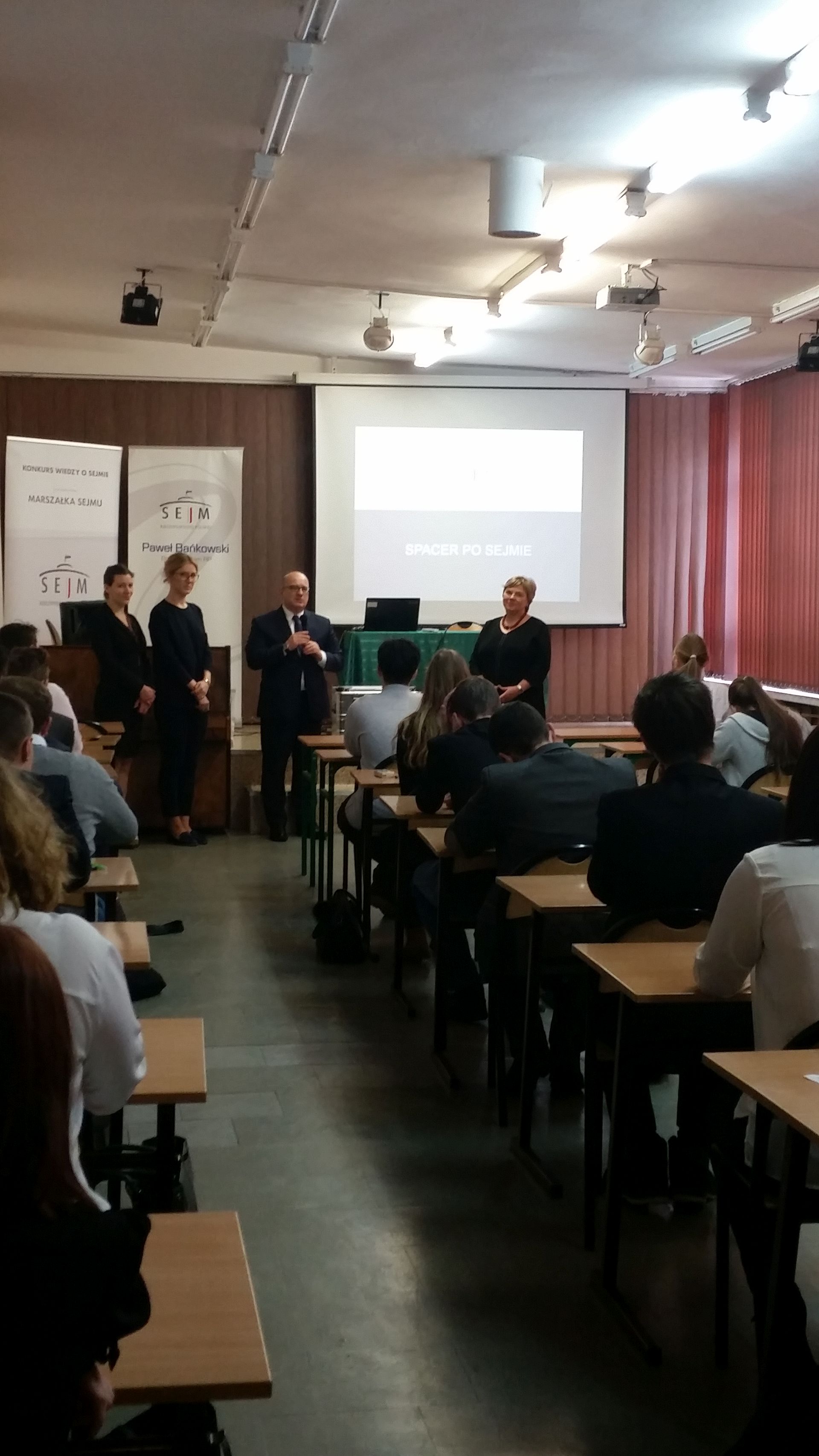 Konkurs został poprzedzony wykładem o współczesności polskiego parlamentaryzmu, zadań i funkcji Sejmu i Senatu, trybu ustawodawczego oraz architektury sejmowej.