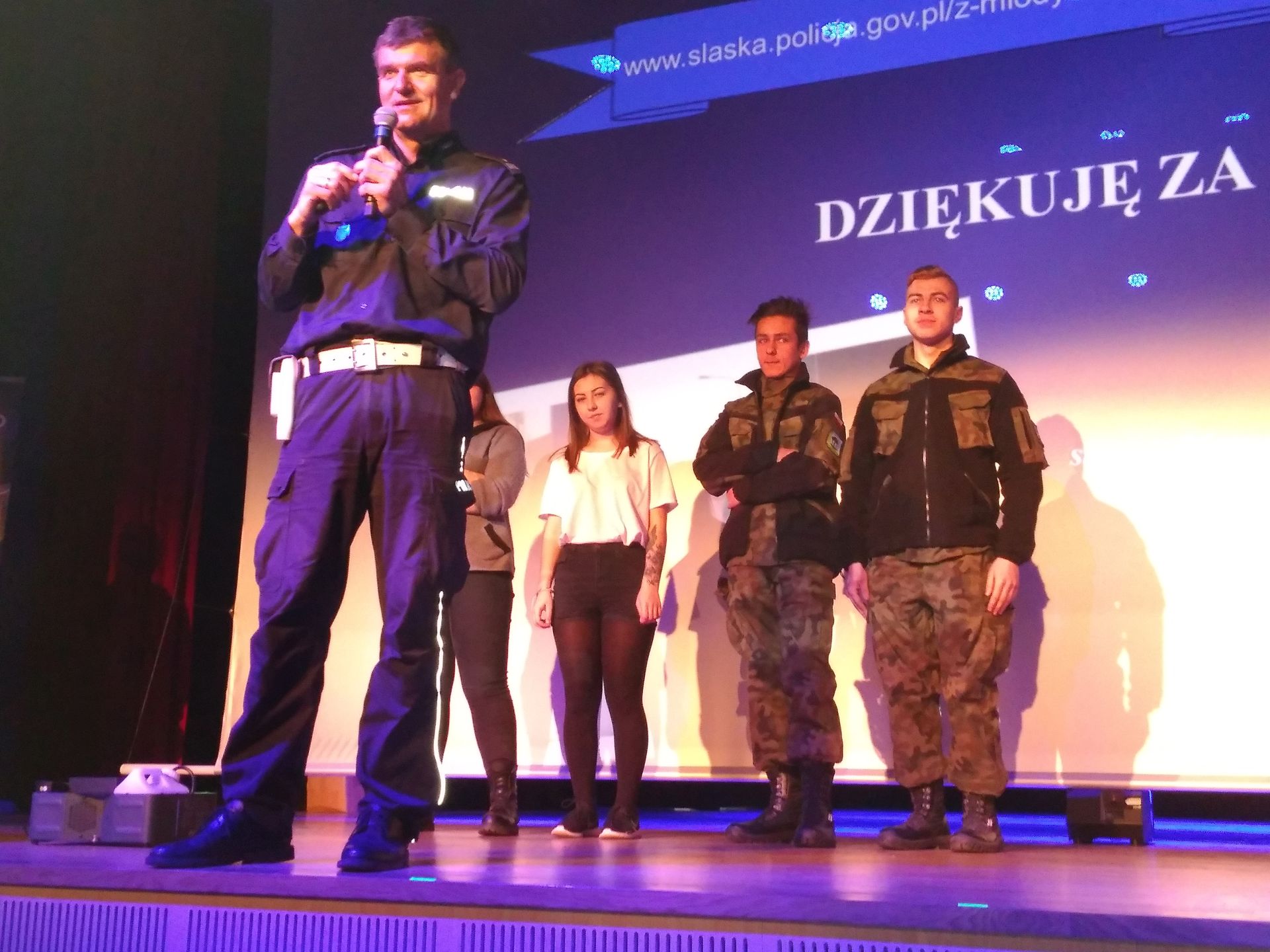 W dniu dzisiejszym uczniowie klas mundurowych 1a, 1b oraz 1e wzięli udział w evencie związanym z kampanią „Wkraczasz w dorosłość – wybieraj” zorganizowanym przez Komendę Wojewódzką Policji w Katowicach oraz Komendę Miejską Policji z Jaworzna. W trakcie spotkania uczniowie wysłuchali prelekcji na temat bezpieczeństwa w ruchu drogowym oraz uzależnień od środków psychotropowych. Organizatorzy zaprosili do udziału przedstawicieli Fundacji „Wyzwanie Nadziei”, którzy przedstawili widowisko nt. uzależnień,oraz omówili sposoby pomocy osobom dotkniętym nałogami. Spotkanie zakończył występ duetu „Need for Strings”.