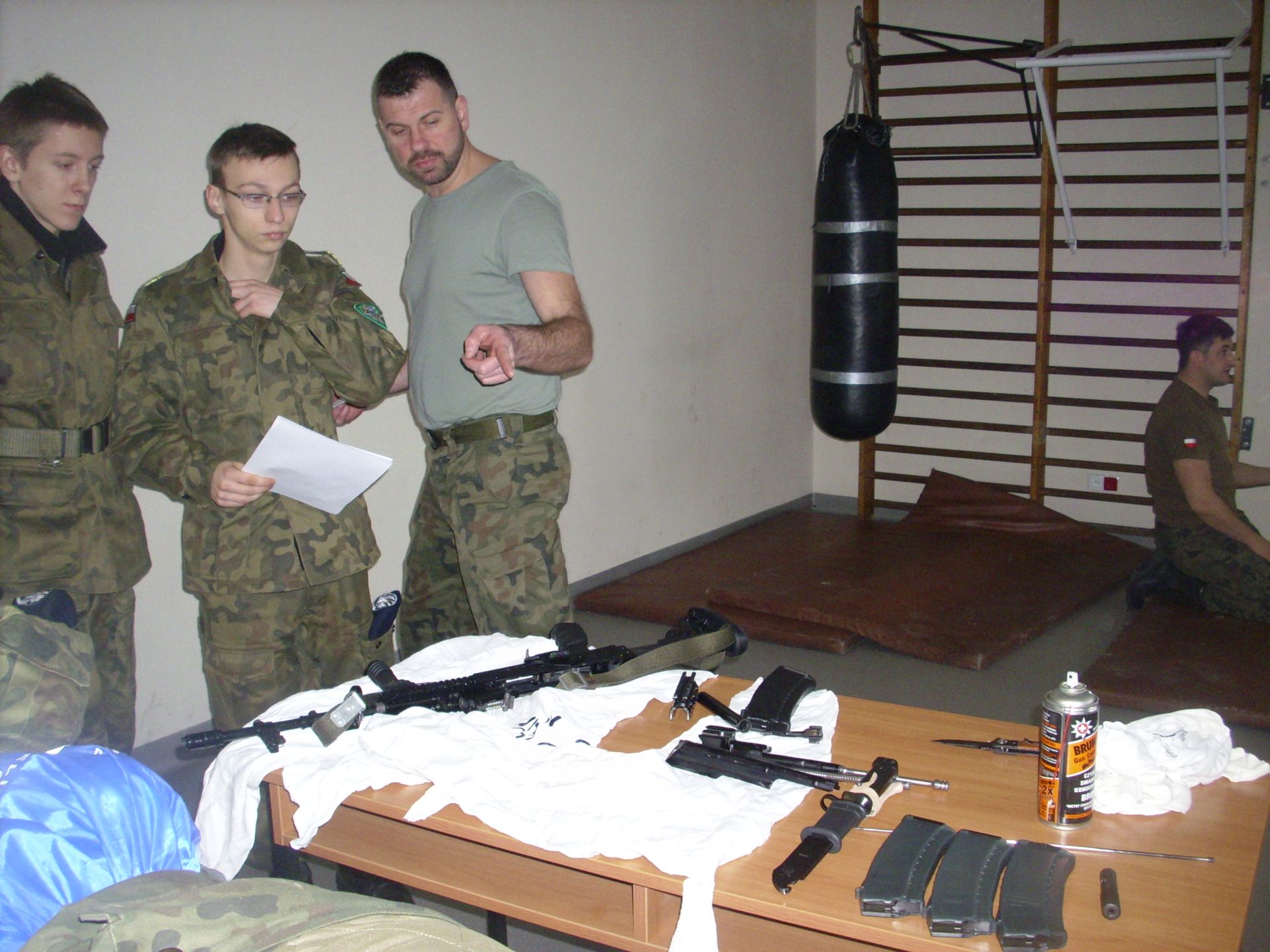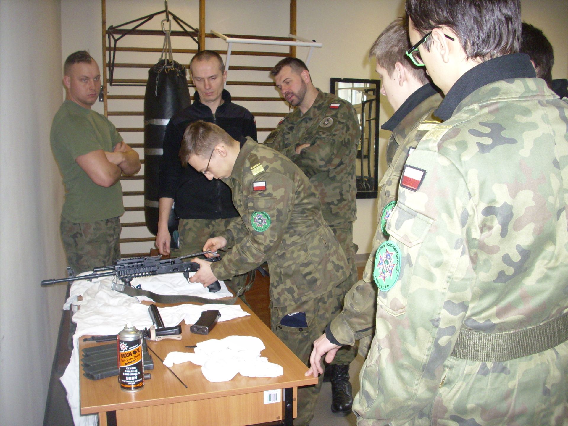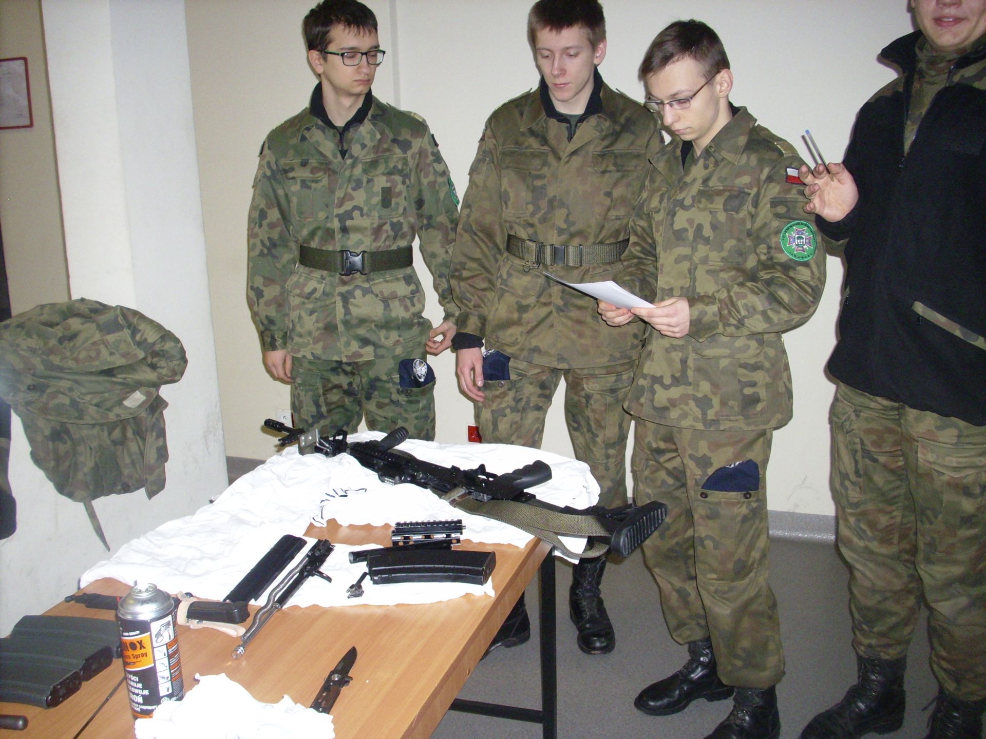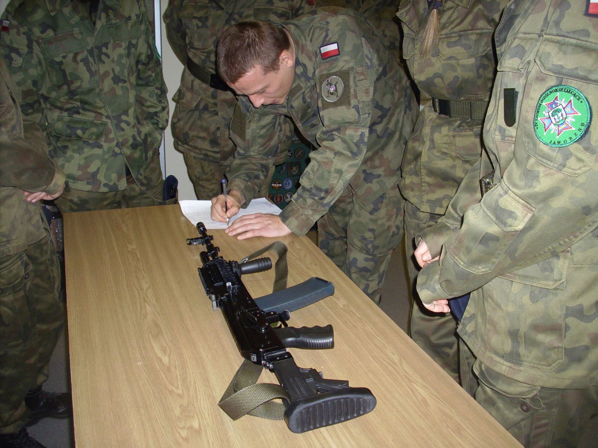 Zagadnienia dzisiejszych zajęć to taktyka oraz szkolenie strzeleckie. Tematyka zajęć swoim zakresem obejmowała reakcję żołnierza w różnych sytuacjach taktycznych (sposób działania i zachowania się) oraz czynności przygotowawcze do strzelania (ładowanie magazynków, przygotowanie broni do strzelania, składanie i rozkładanie broni, obsługa broni będącej na wyposażeniu żołnierzy jednostki – broń palna typu KBS BERYL – wzór 96). Szkolenie strzeleckie to nie tylko praktyczna nauka, to także zdobywanie cennych wiadomości na temat budowy, charakterystyki, przeznaczenia i zastosowania broni, zasady działania karabinu, warunków bezpiecznego obchodzenia się z bronią oraz przepisów karnych dotyczących posługiwania się bronią, a także danych taktyczno – technicznych broni.