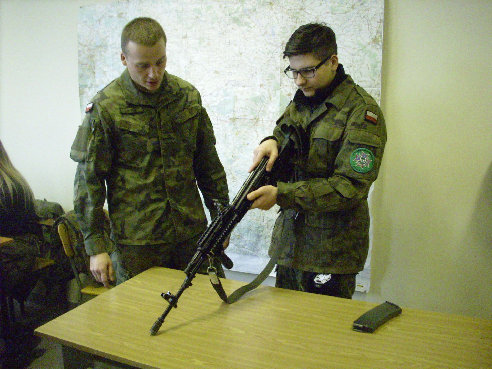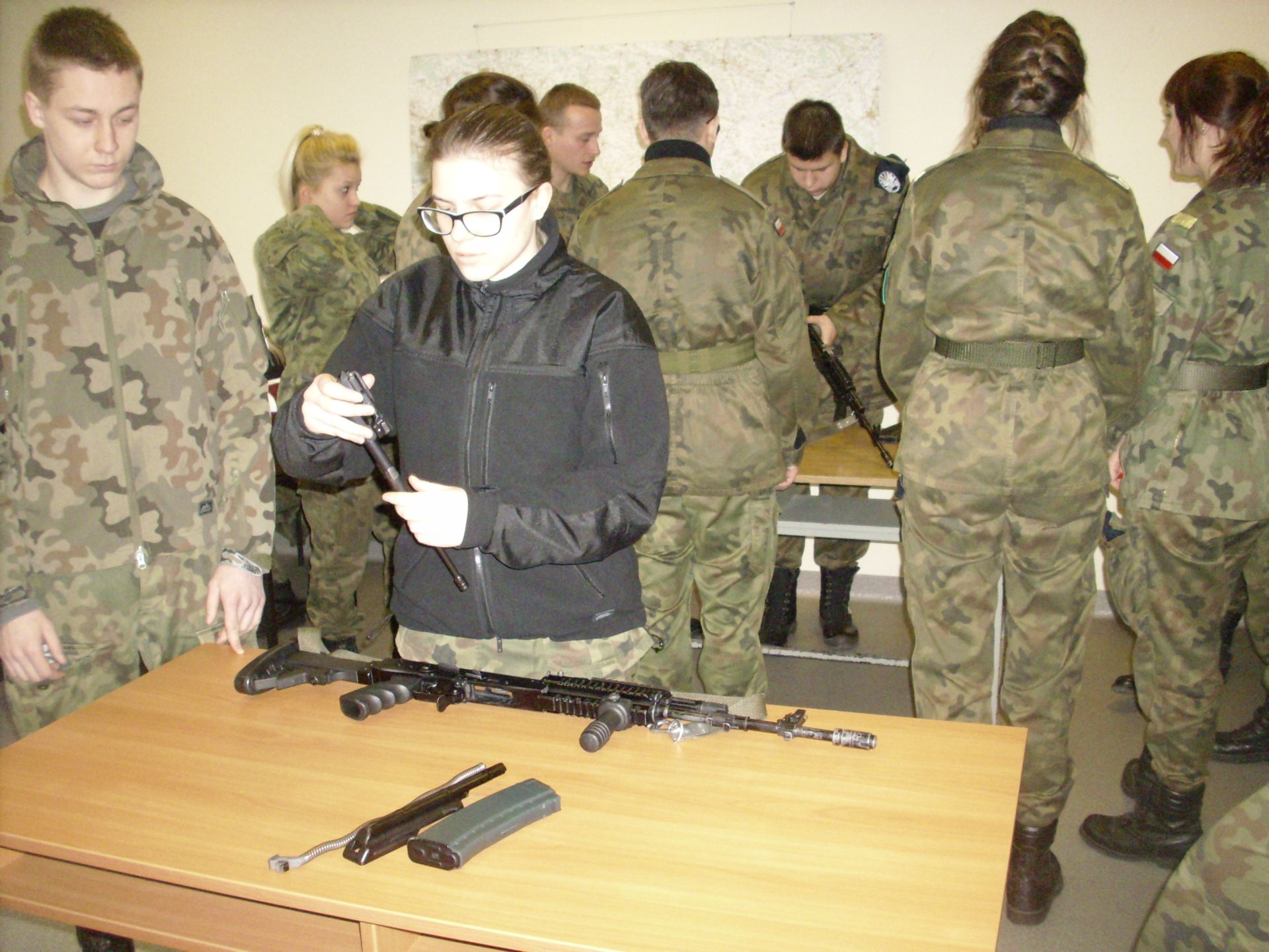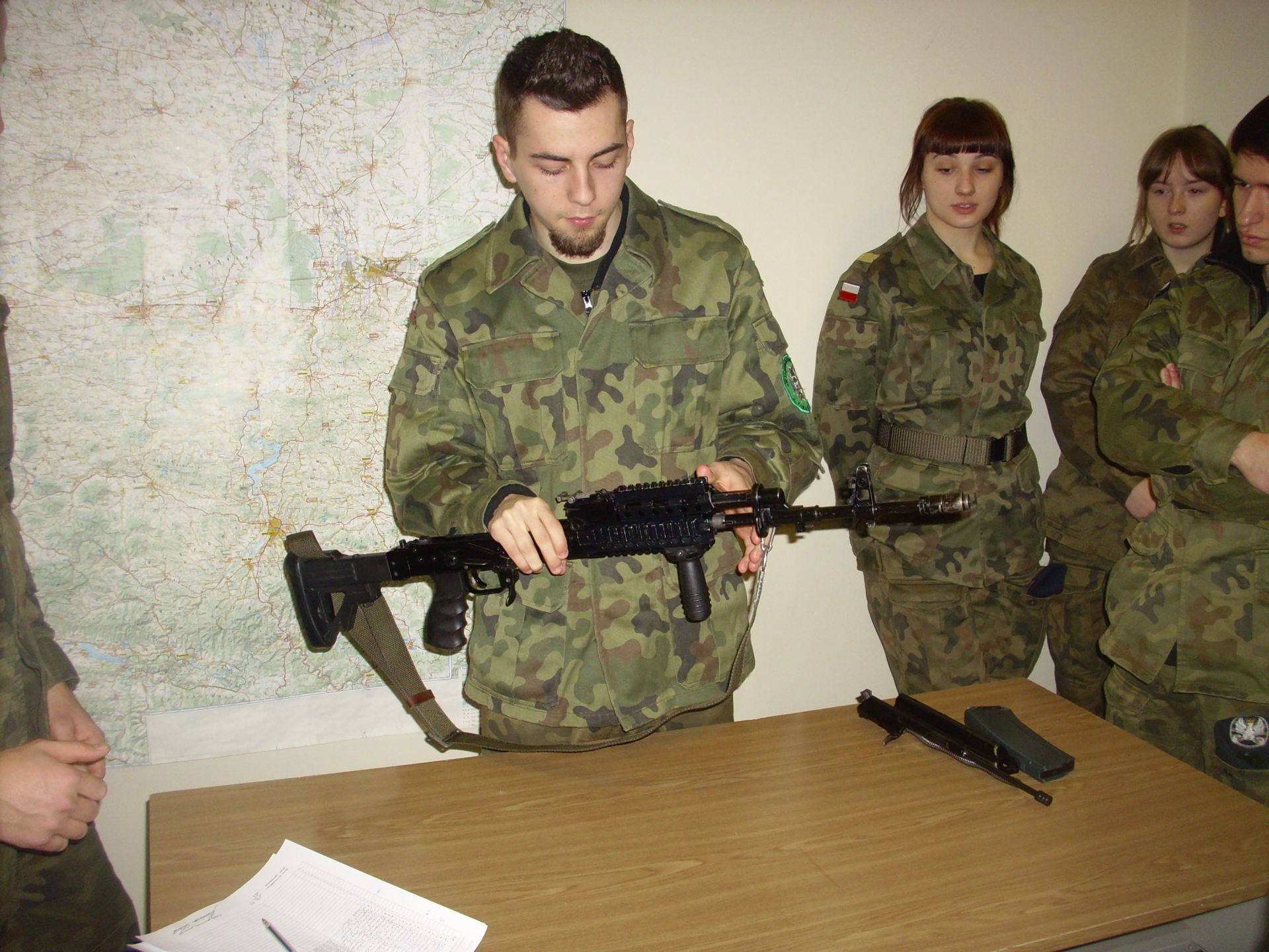 Zagadnienia dzisiejszych zajęć to taktyka oraz szkolenie strzeleckie. Tematyka zajęć swoim zakresem obejmowała reakcję żołnierza w różnych sytuacjach taktycznych (sposób działania i zachowania się) oraz czynności przygotowawcze do strzelania (ładowanie magazynków, przygotowanie broni do strzelania, składanie i rozkładanie broni, obsługa broni będącej na wyposażeniu żołnierzy jednostki – broń palna typu KBS BERYL – wzór 96). Szkolenie strzeleckie to nie tylko praktyczna nauka, to także zdobywanie cennych wiadomości na temat budowy, charakterystyki, przeznaczenia i zastosowania broni, zasady działania karabinu, warunków bezpiecznego obchodzenia się z bronią oraz przepisów karnych dotyczących posługiwania się bronią, a także danych taktyczno – technicznych broni.