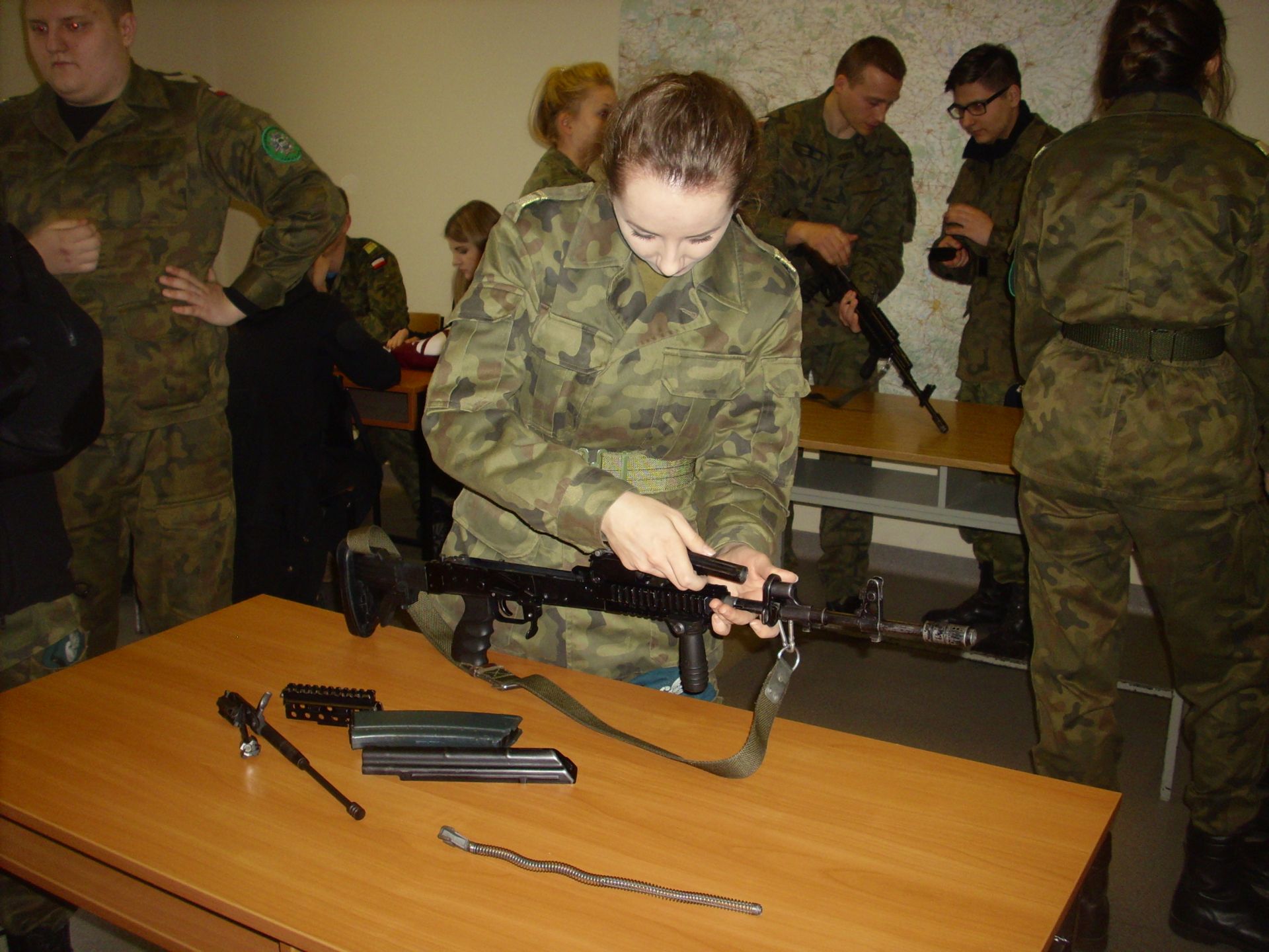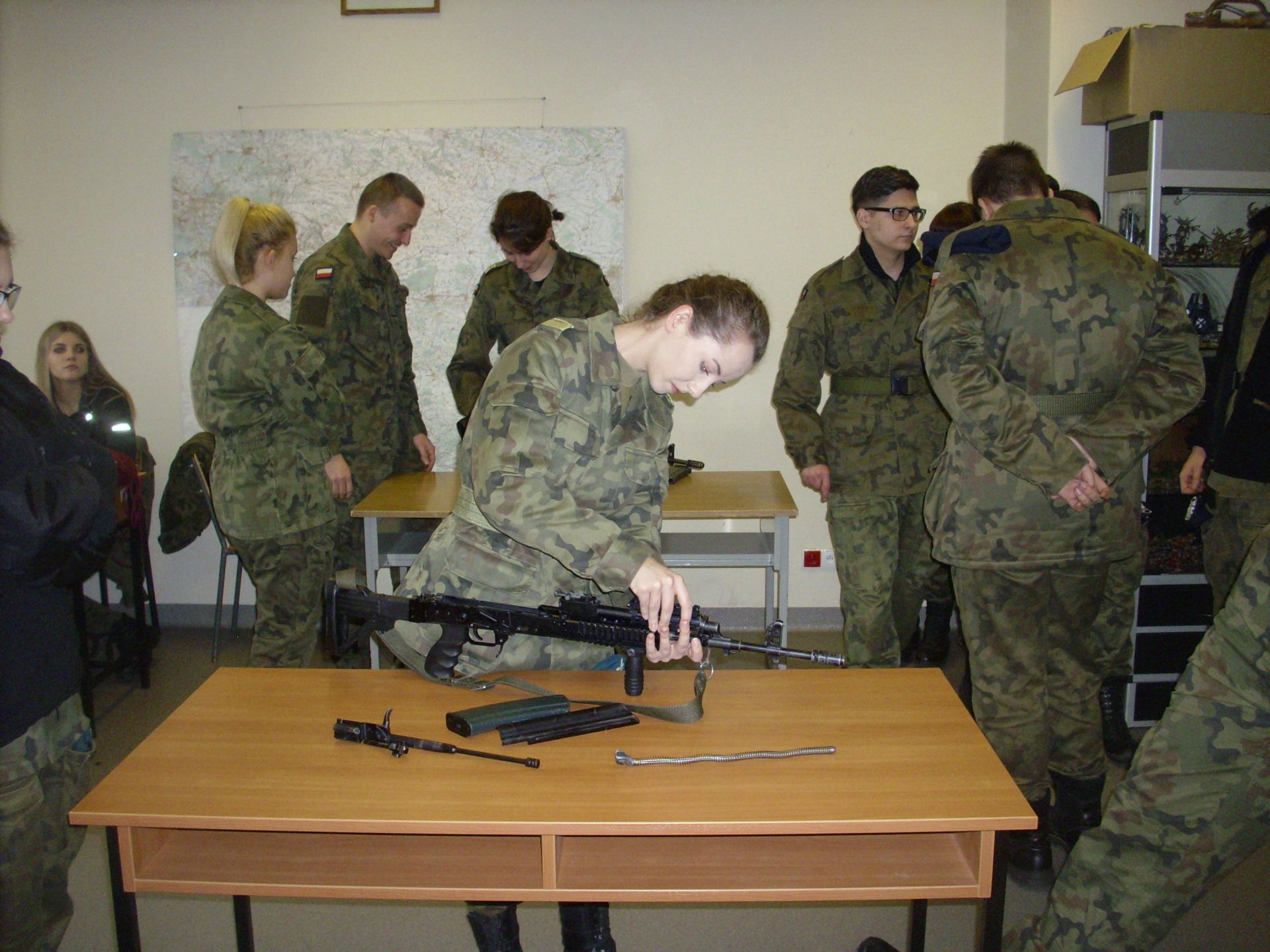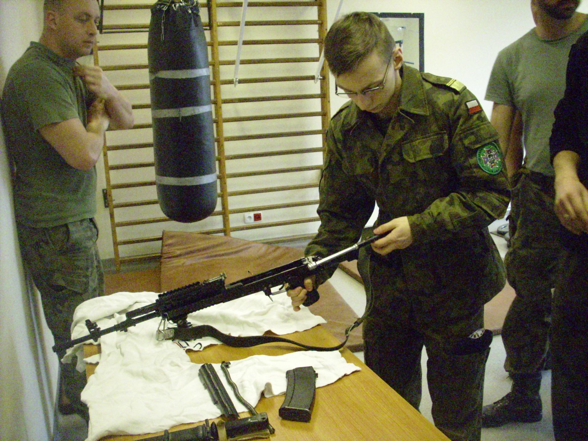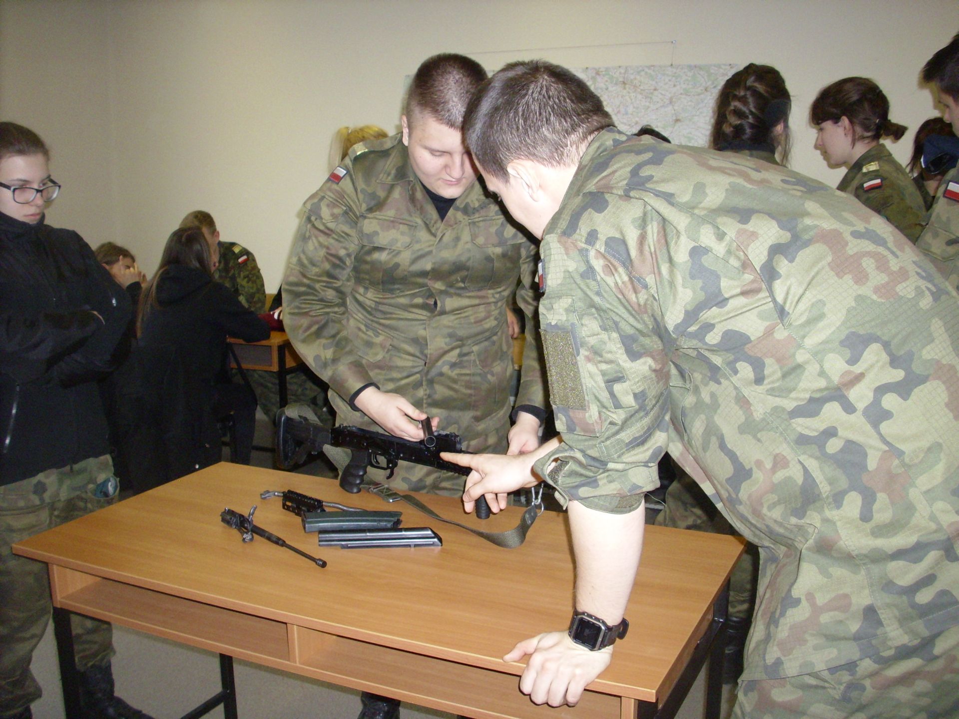 Zagadnienia dzisiejszych zajęć to taktyka oraz szkolenie strzeleckie. Tematyka zajęć swoim zakresem obejmowała reakcję żołnierza w różnych sytuacjach taktycznych (sposób działania i zachowania się) oraz czynności przygotowawcze do strzelania (ładowanie magazynków, przygotowanie broni do strzelania, składanie i rozkładanie broni, obsługa broni będącej na wyposażeniu żołnierzy jednostki – broń palna typu KBS BERYL – wzór 96). Szkolenie strzeleckie to nie tylko praktyczna nauka, to także zdobywanie cennych wiadomości na temat budowy, charakterystyki, przeznaczenia i zastosowania broni, zasady działania karabinu, warunków bezpiecznego obchodzenia się z bronią oraz przepisów karnych dotyczących posługiwania się bronią, a także danych taktyczno – technicznych broni.