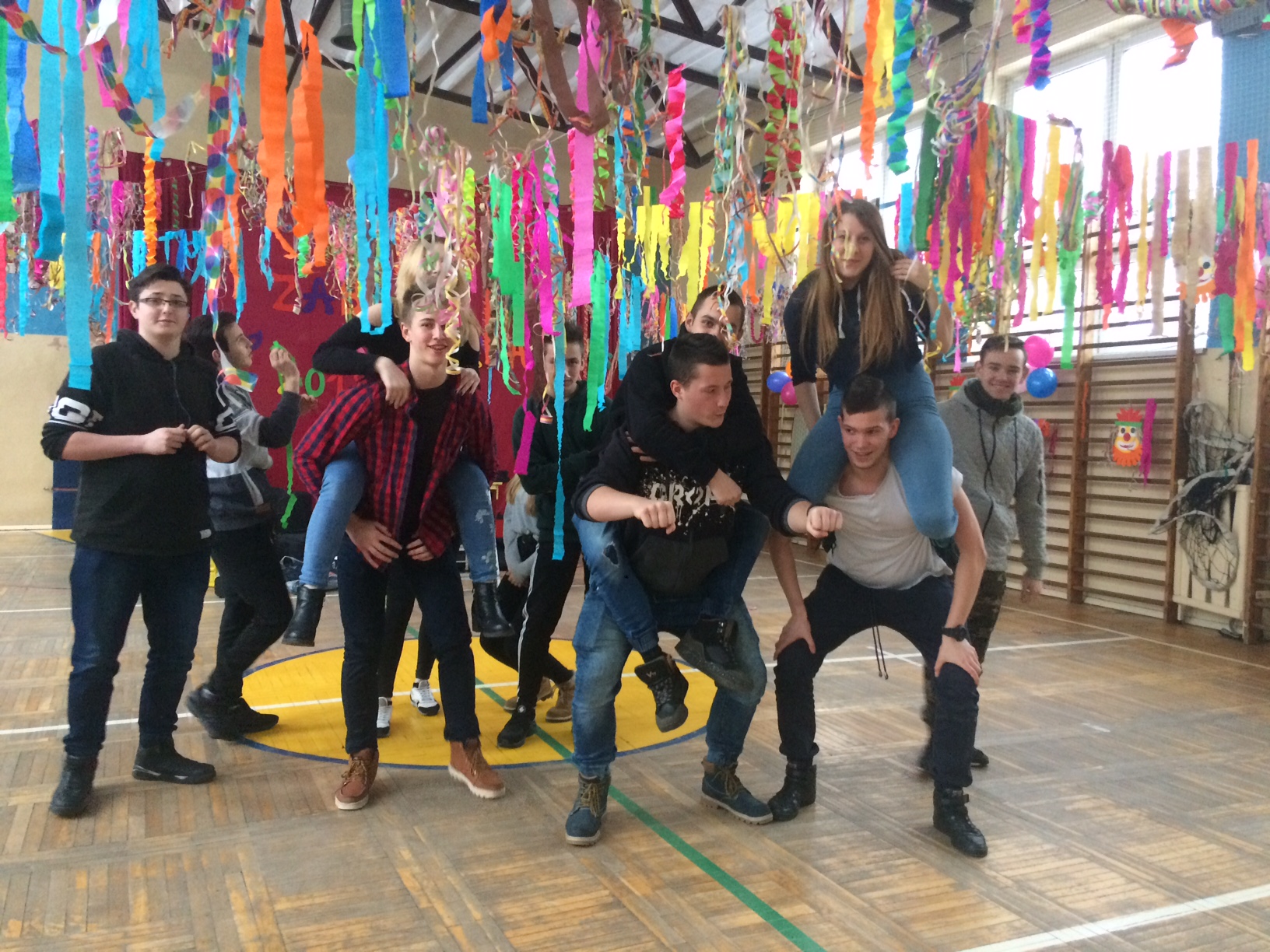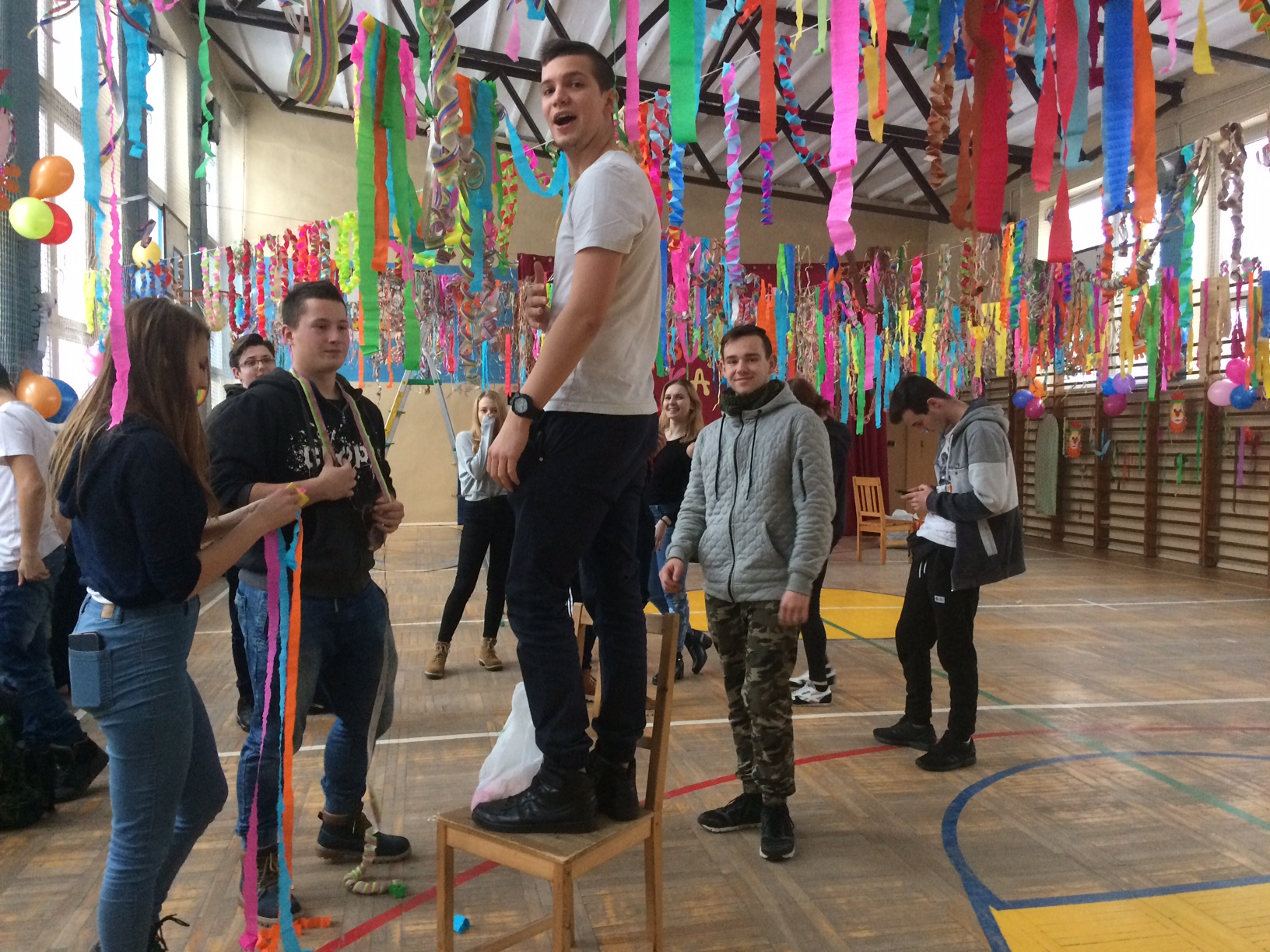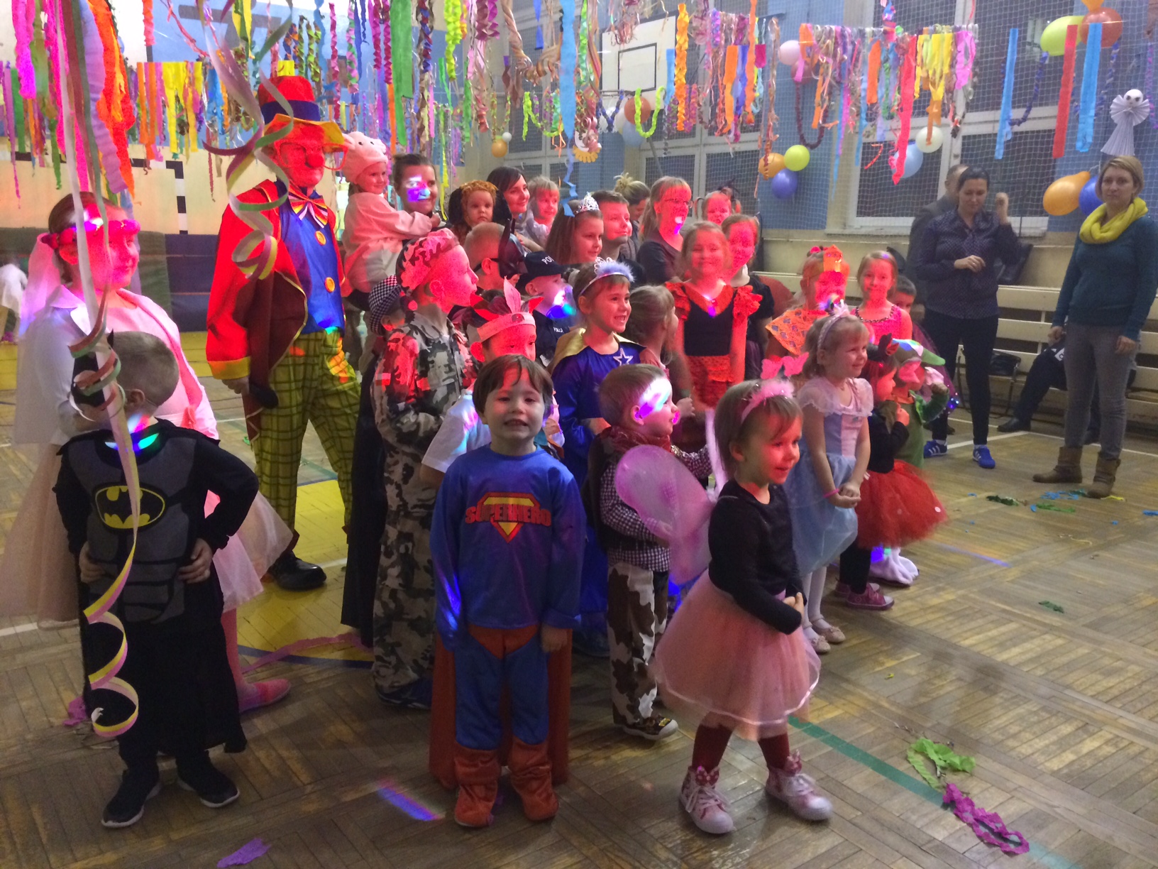 Grupa 12 wolontariusz z klasy 2J oraz 1A przygotowała BAL KARNAWAŁOWY 2018 dla dzieci pracowników oświaty! Bal pod egidą Oświatowych Związków Zawodowych „Solidarność” odbył się 23 stycznia br. w Szkole Podstawowej nr 5 w Jaworznie. Wolontariusze – uczniowie z fantazją przygotowali salę balową. Dzieci w wieku 2-10 lat w strojach karnawałowych bawiły się wspaniale w bogatym – barwnym – balonowo – bibułowym karnawałowym anturażu.