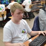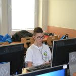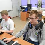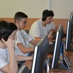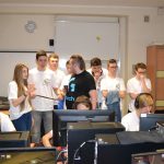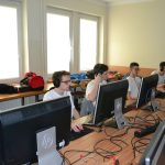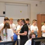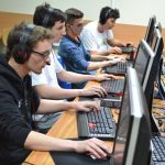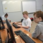 Grupa uczniów klasy 2H pod opieką prof. Marcina Gut na zajęciach praktycznych, podczas naprawy sprzętu komputerowego oraz modernizacji sieci lokalnej, w pracowni komputerowej w Zespole Szkół Ponadgimnazjalnych nr 4 w Jaworznie.
