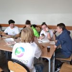 Grupa uczniów klasy 2H pod opieką prof. Marcina Gut na zajęciach praktycznych, podczas naprawy sprzętu komputerowego w pracowni komputerowej w Zespole Szkół Ponadgimnazjalnych nr 4 w Jaworznie.