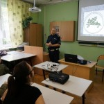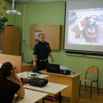Specjalista Wydziału Ruchu Drogowego nadkomisarz Konrad Konopacki w trakcie prezentacji multimedialnej przypomniał, że zarówno wtedy, gdy idziesz, jedziesz rowerem, samochodem, pociągiem czy autobusem jesteś uczestnikiem ruchu drogowego. Masz prawa, ale też obowiązki. Głównym obowiązkiem jest dbałość o bezpieczeństwo – Twoje, Twoich pasażerów i innych użytkowników drogi.