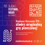Śląski Festiwal Nauki KATOWICE organizuje kolejny konkurs z cyklu „Naukowe Wyzwanie ŚFN”. Tym razem zadaniem uczestników jest stworzenie oryginalnej gry towarzyskiej – planszowej lub karcianej. W wyzwaniu można wziąć udział zarówno w pojedynkę, jak i zespołowo.