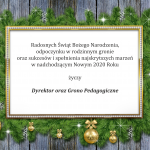 Radosnych Świąt Bożego Narodzenia, odpoczynku w rodzinnym gronie, oraz sukcesów i spełnienia najskrytszych marzeń w nadchodzącym Nowym 2020 Roku – życzy Dyrektor oraz Grono Pedagogiczne